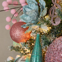 Inspirada en la suavidad del algodón y la nieve, esta colección combina elementos en rosa apastelado y verde menta con esferas blancas, salpicadas de toques metálicos plateados y lilas. Este árbol le dará a tu espacio una atmósfera dulce y juguetona.